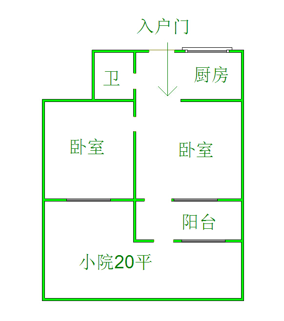 2室1厅1卫,53.96平米